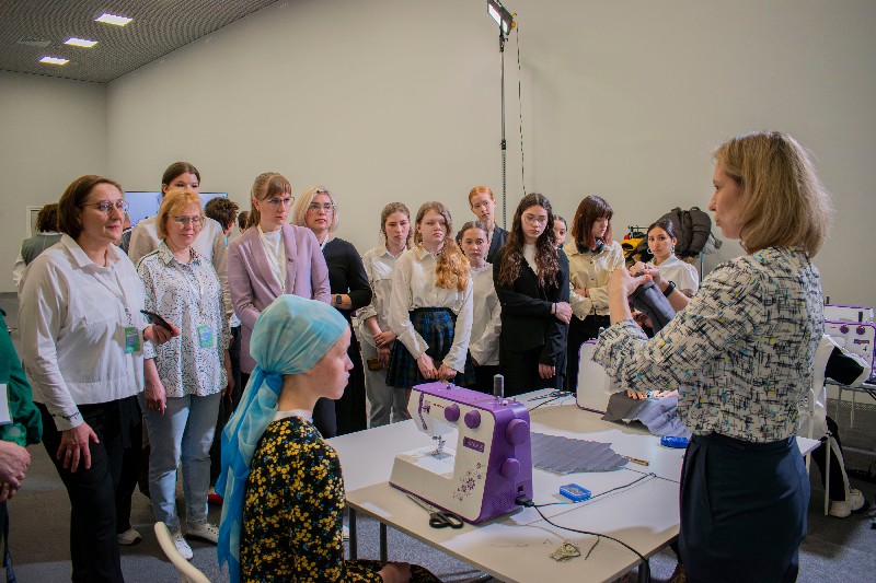 После первой части деловой программы участники акселератора смогли посмотреть, как на площадке нашего колледжа проходит партнёрская профпроба с учениками Красноярской средней школы № 27 «Редизайн модели куртки «Борус» для научно-производственной компании «Рок Пиларс». Директор компании Николай Леонидович Наумов лично рассказал особенности и нюансы работы на производстве по пошиву легкой промышленности и показал свою продукцию, объясняя в чем заключается ее уникальность.