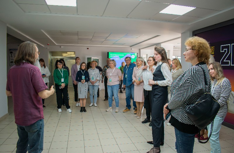 В рамках первого дня гости прошлись с экскурсией по основным площадкам креативного кластера колледжа сферы услуг и предпринимательства.