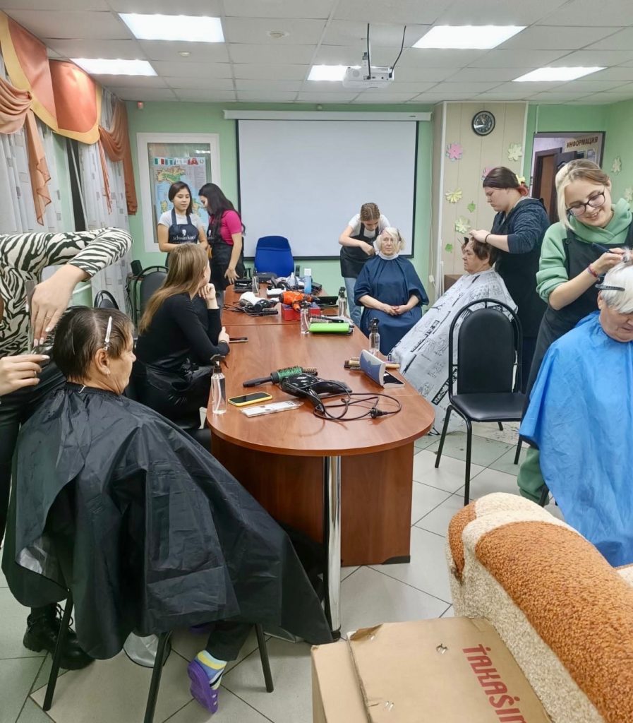 29 ноября студенты колледжа профессии парикмахер провели выездную благотворительную акцию по оказанию парикмахерских услуг гражданам пожилого возраста и инвалидам в комплексном центре социального обслуживания населения «Советский» центральной местной организации Всероссийского общества слепых центрального района.
