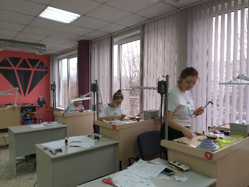 Прейс Юлия, Чаган Валентина, Серова Софья – участницы компетенции Ювелирное дело! Вместе с ними на площадке, работа которой организована в нашем колледже, соревнуются конкурсанты – студенты Сибирского Федерального Университета Гой Полина, Малышенок Дарья, Трофимова Маргарита!