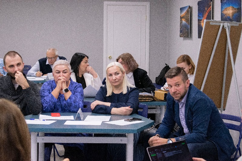 В Центре компетенций «Бизнес. Начало» Институт развития профессионального образования организовал для колледжей креативных индустрий групповую работу по доработке дорожных карт. В работе приняли участие также и.о. ректора ИРПО Наталия Золотарева, руководитель Центра развития профессионального образования в сфере креативных индустрий Иоанн Клиндухов, директор по проектам группы «Карьера в России» Сергей Галактионов, начальник отдела среднего профессионального образования министерства образования Красноярского края Людмила Казакова.